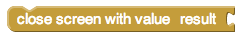 Closes the current screen and passes text to the app that opened this one. This command is for returning text to non-App Inventor activities, not to App Inventor screens. For App Inventor Screens, as in multiple screen apps, use close screen with value, not close screen with plain text.