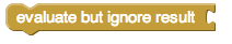 Provides a “dummy socket” for fitting a block that has a plug on its left into a place where there is no socket, such as one of the sequence of blocks in the do part of a procedure or an if block. The block you fit in will be run, but its returned result will be ignored. This can be useful if you define a procedure that returns a result, but want to call it in a context that does not accept a result.